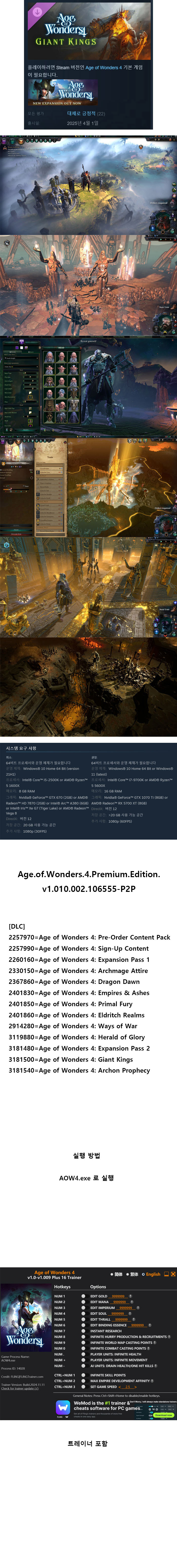 [무설치] 에이지 오브 원더스4-DLC-자이언트 킹즈트레이너 한글