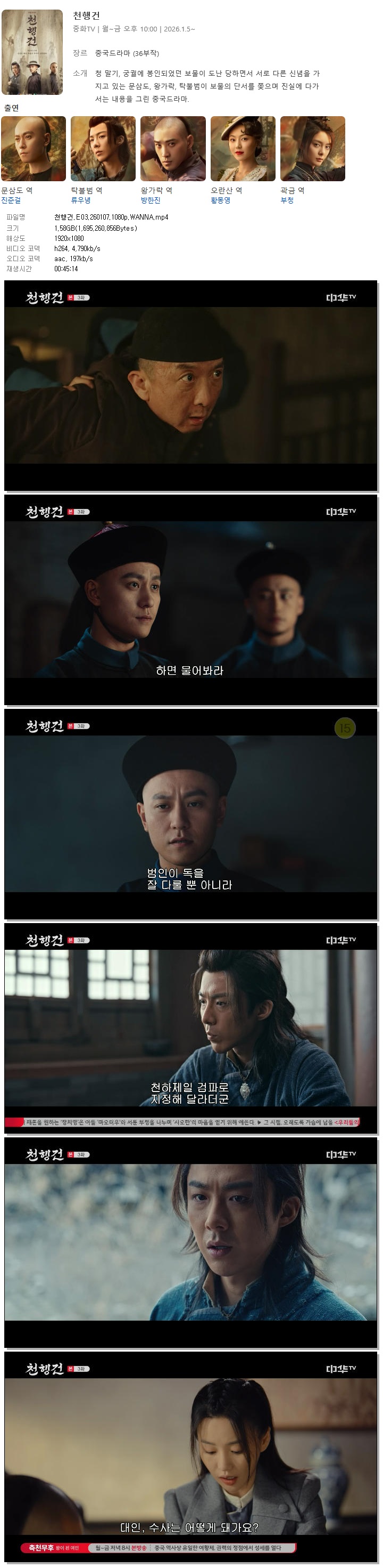 [중화TV] 천행건.E03.260107.1080p.WANNA[진준걸, 류우녕]