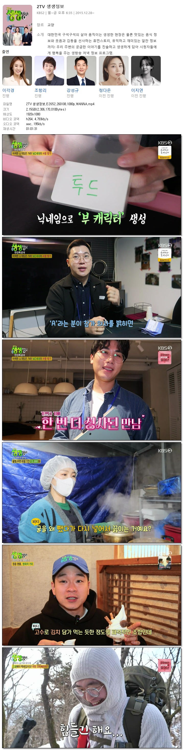 [KBS2] 2TV 생생정보.E2652.260108.1080p.WANNA[이각경, 조항리]