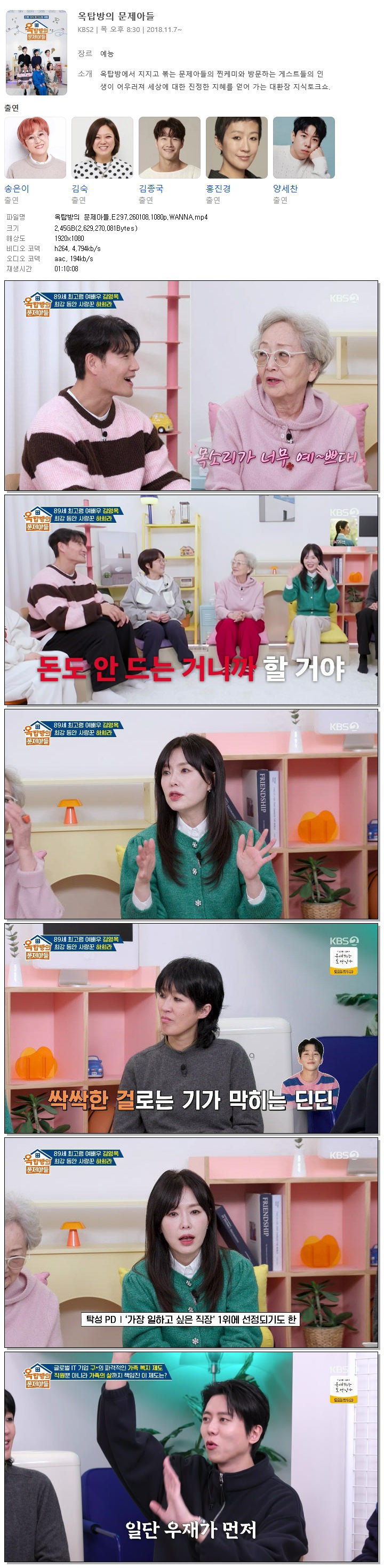 [KBS2] 옥탑방의 문제아들.E297.260108.1080p.WANNA[김영옥, 하희라]