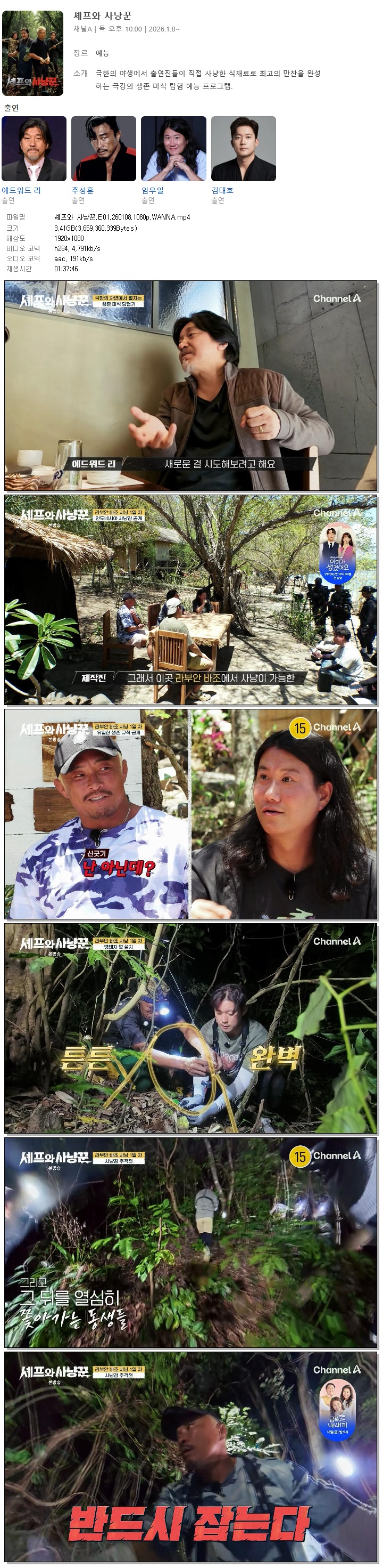[채널A] 셰프와 사냥꾼.E01.260108.1080p.WANNA[에드워드 리, 추성훈]
