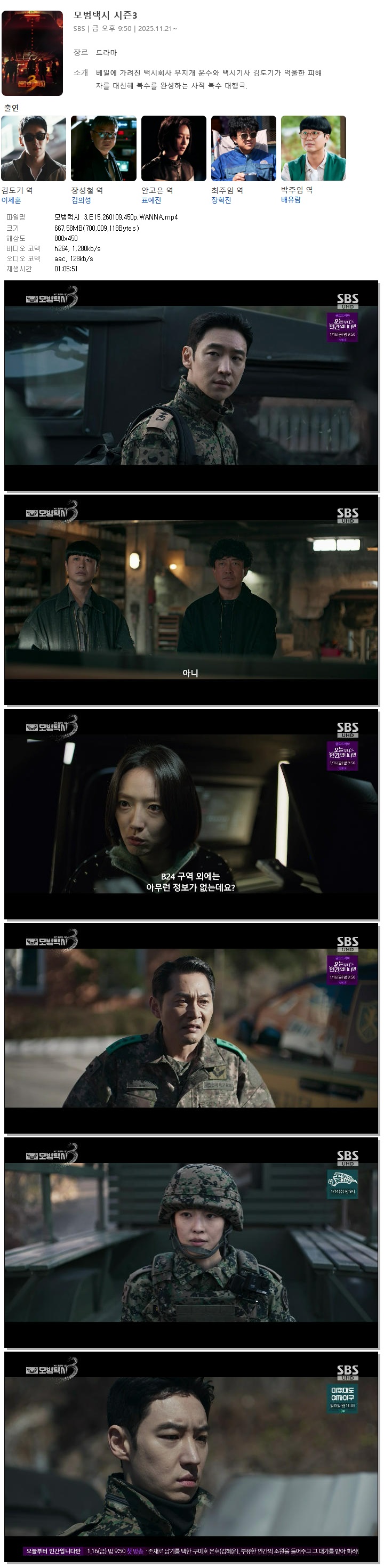 [SBS] 모범택시 3.E15.260109.450p.WANNA[이제훈, 김의성].mp4 667.6 M MP4 01:05:51 800x450