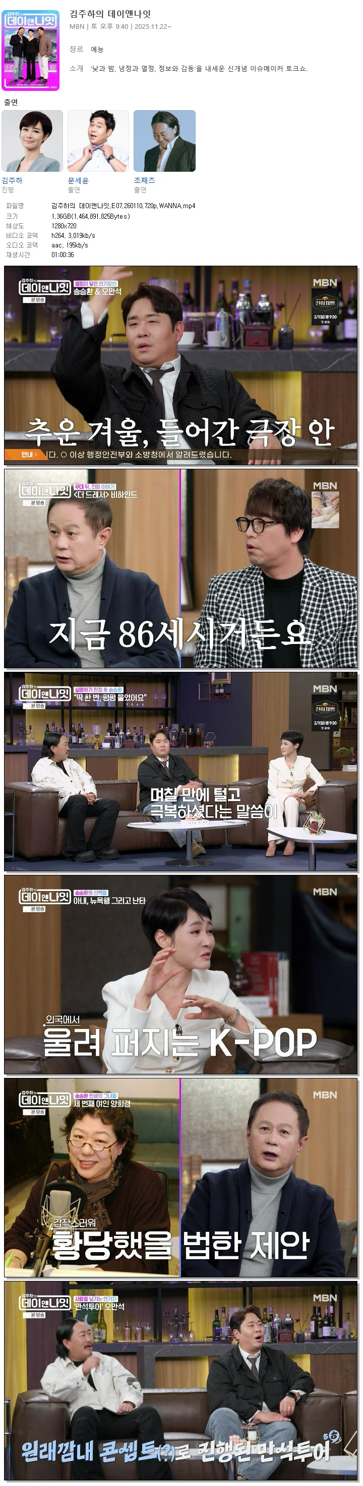 [MBN] 김주하의 데이앤나잇.E07.260110.720p.WANNA[송승환, 오만석]
