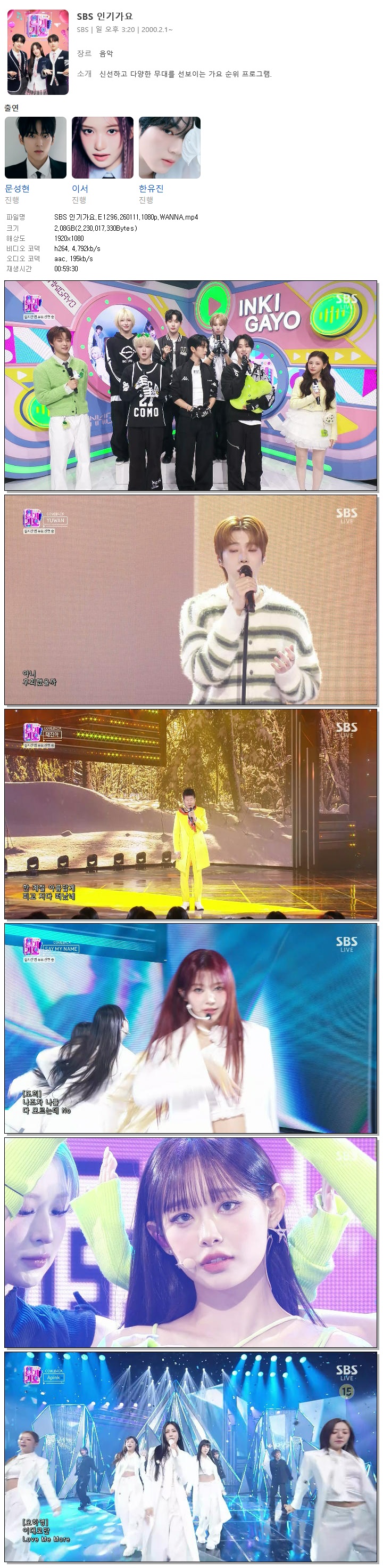 [SBS] SBS 인기가요.E1296.260111.1080p.WANNA[에이핑크, 츄]