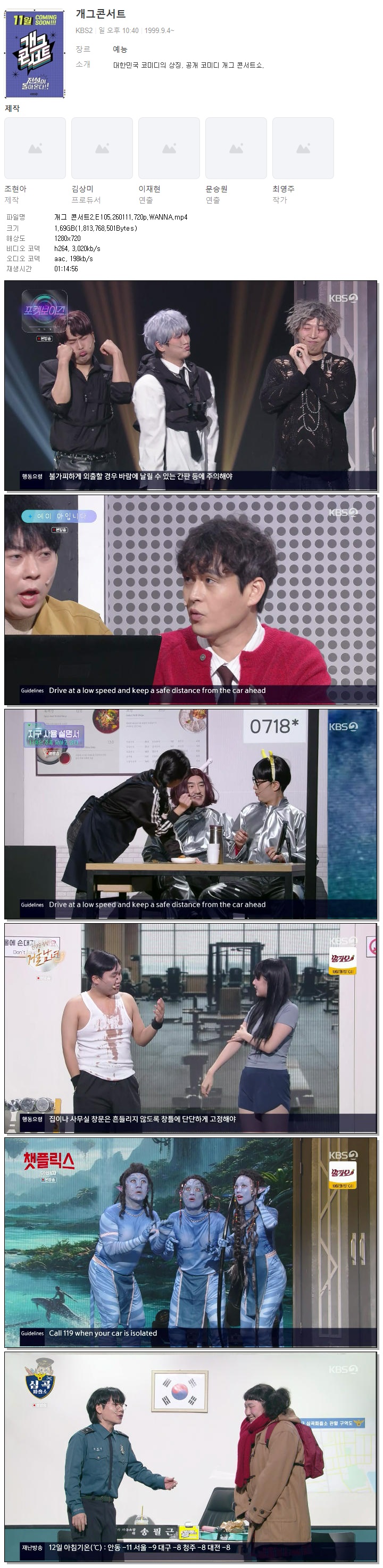 [KBS2] 개그 콘서트2.E105.260111.720p.WANNA[신윤승, 박성광].mp4 1.7 G MP4 01:14:56 1280x720