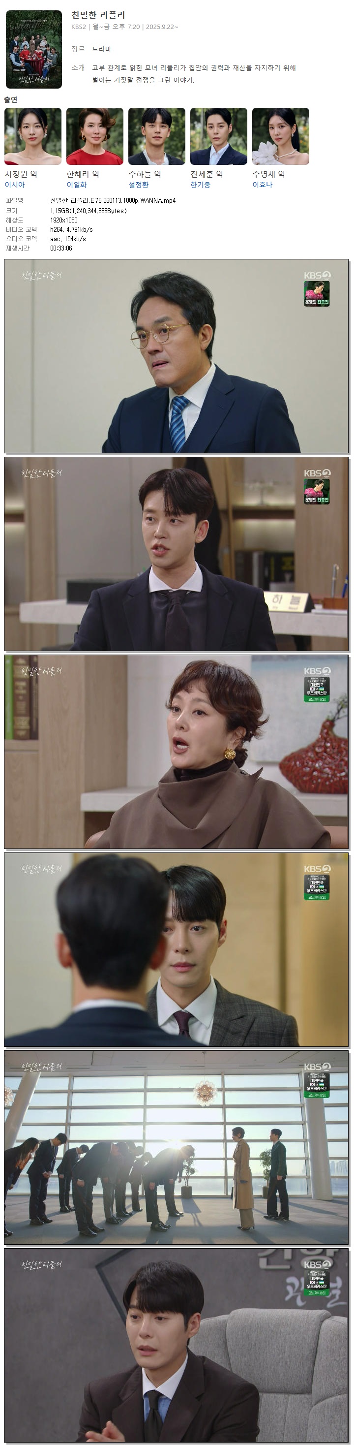 [KBS2] 친밀한 리플리.E75.260113.1080p.WANNA[이시아, 이일화]