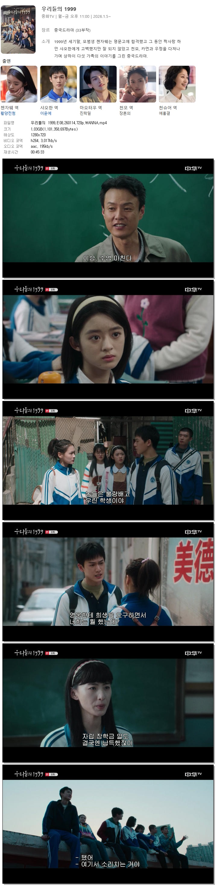 [중화TV] 우리들의 1999.E08.260114.720p.WANNA[황양전첨, 이윤예]