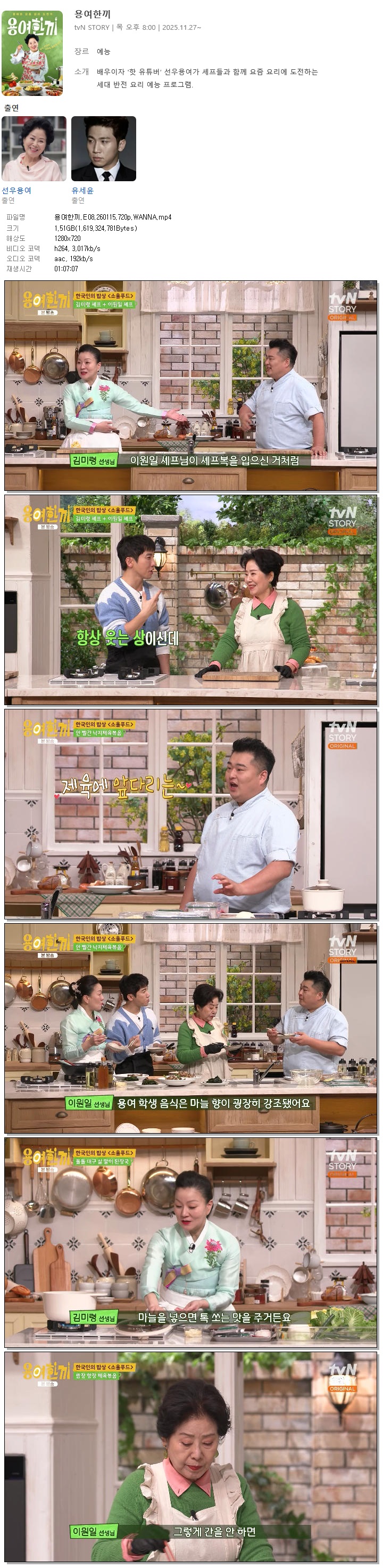 [TVN STORY] 용여한끼.E08.260115.720p.WANNA[이원일, 김미령]