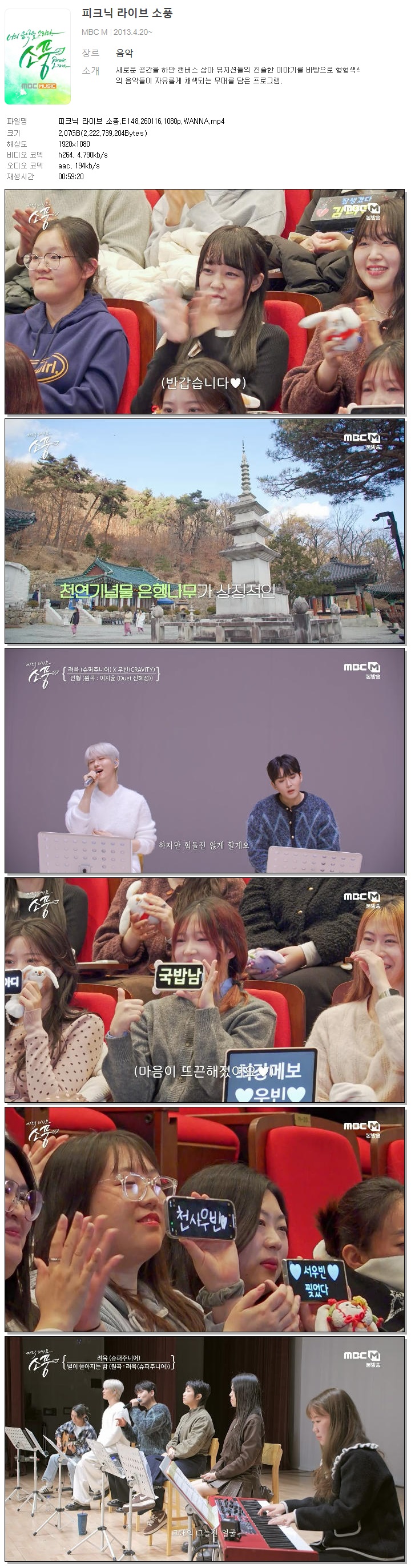 [MBC MUSIC] 피크닉 라이브 소풍.E148.260116.1080p.WANNA[려욱, 안예은]
