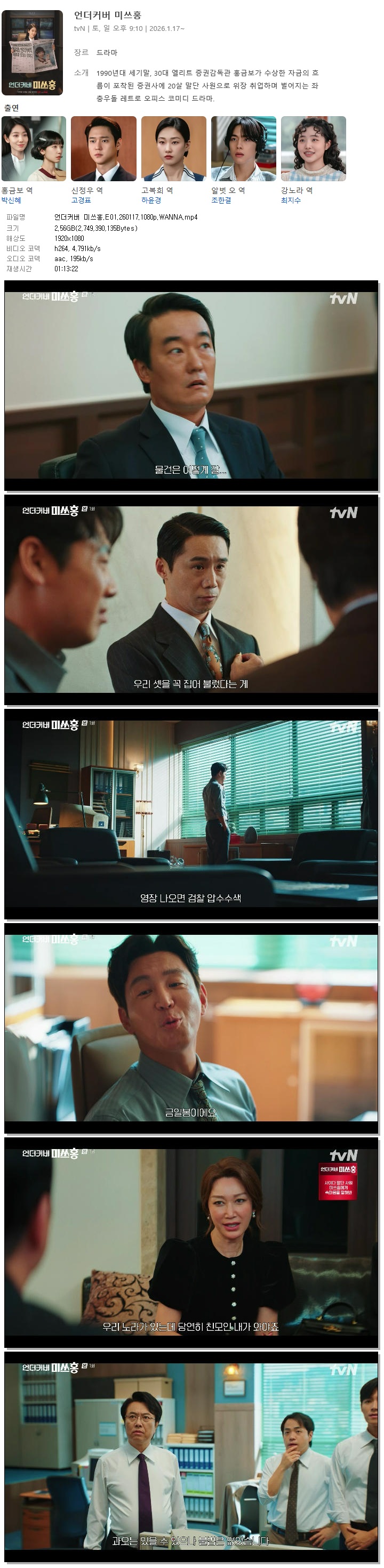 [TVN] 언더커버 미쓰홍.E01.260117.1080p.WANNA[박신혜, 고경표]