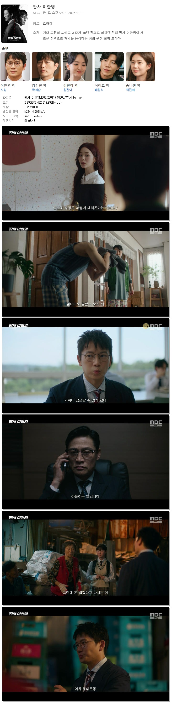 [MBC] 판사 이한영.E06.260117.1080p.WANNA[지성, 원진아]