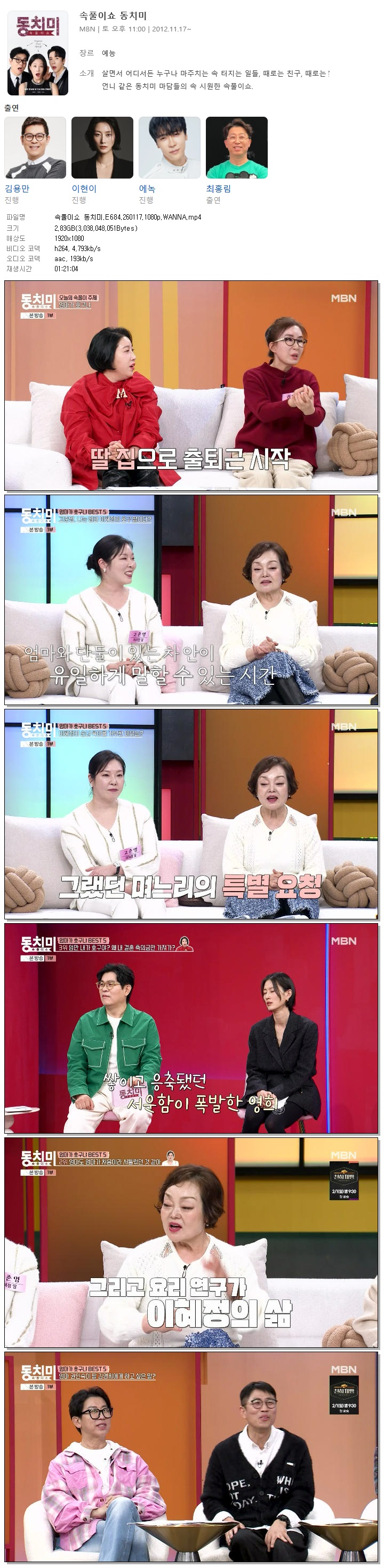 [MBN] 속풀이쇼 동치미.E684.260117.1080p.WANNA[이혜정, 김영희]