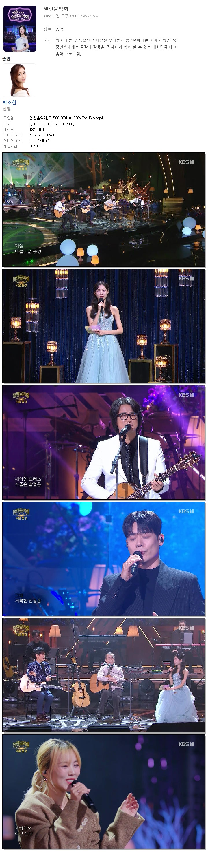 [KBS1] 열린음악회.E1560.260118.1080p.WANNA[유리상자, 소향]