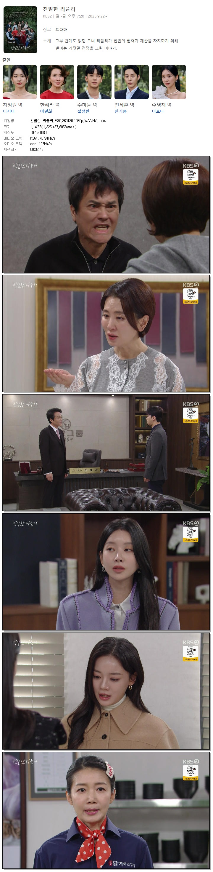 [KBS2] 친밀한 리플리.E80.260120.1080p.WANNA[이시아, 이일화]