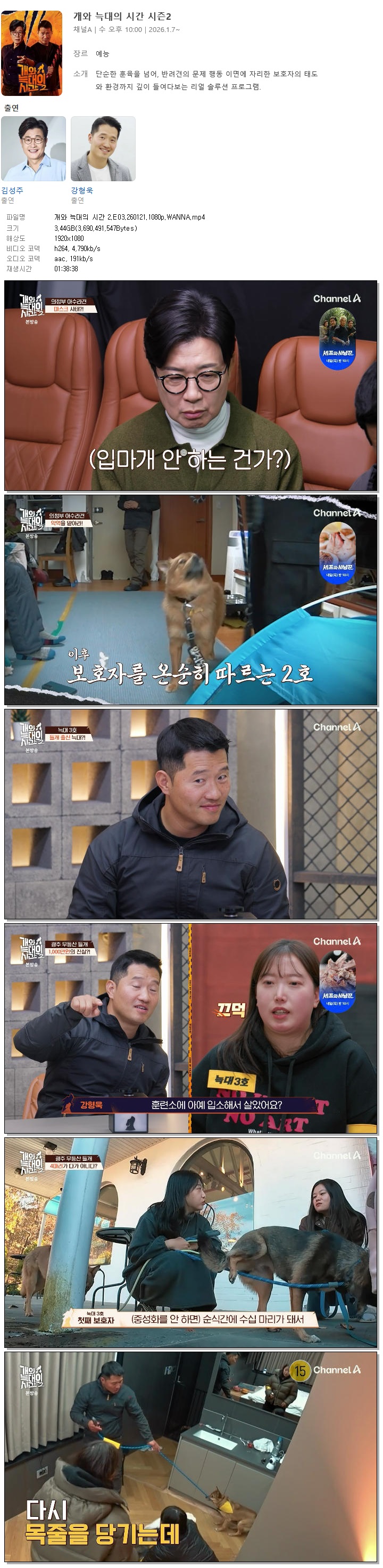 [채널A] 개와 늑대의 시간 2.E03.260121.1080p.WANNA[김성주, 강형욱]