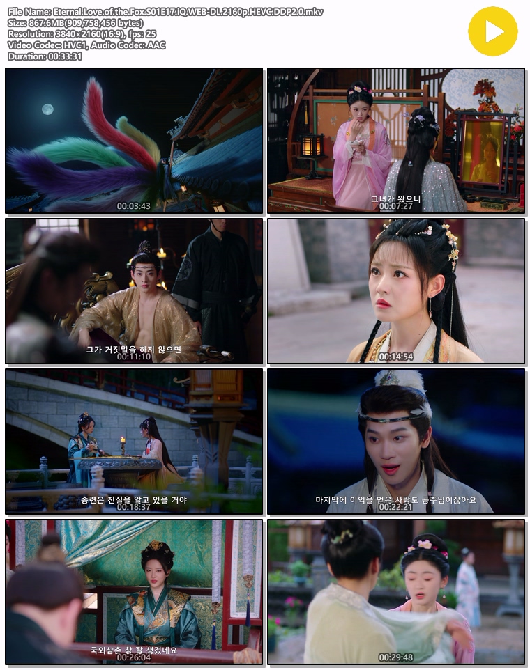 | Eternal.Love.of.the.Fox.S01E17.iQ.WEB-DL.2160p.HEVC.DDP2.0.mkv | 867.6 M | MKV | 00:33:31 | 3840x2160 |