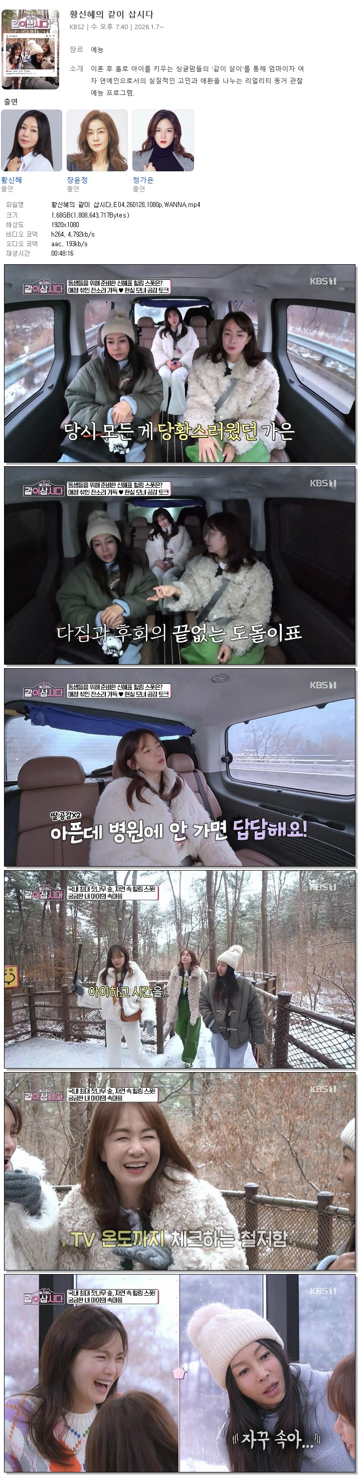 [KBS1] 황신혜의 같이 삽시다.E04.260128.1080p.WANNA[황신혜, 정가은]