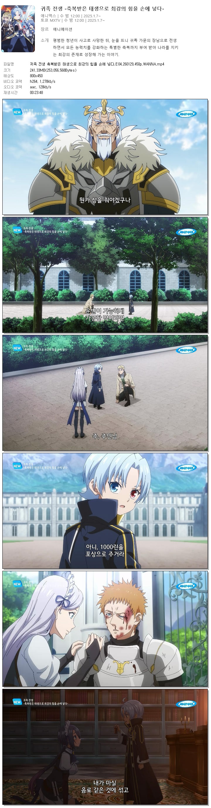 귀족 전생 축복받은 태생으로 최강의 힘을 손에 넣다.E04.260129.450p.WANNA
