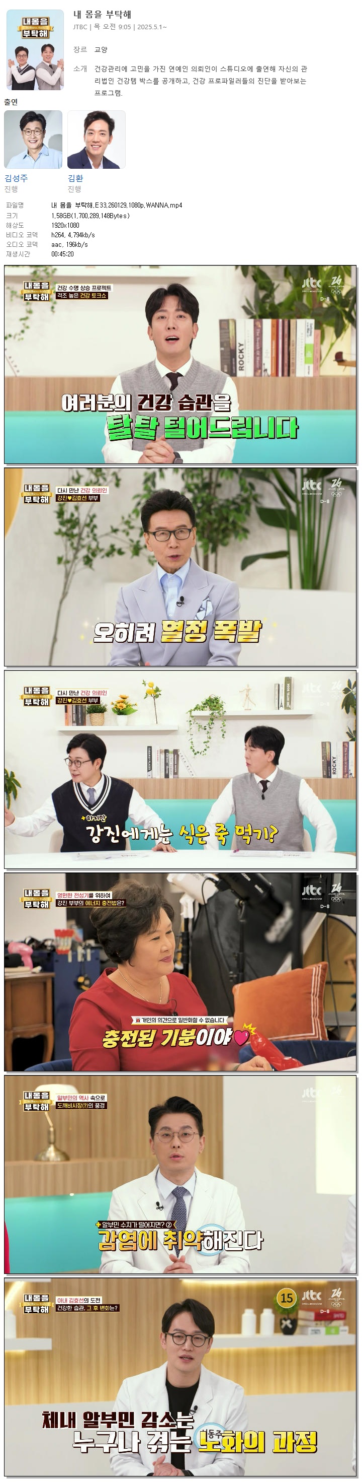 [JTBC] 내 몸을 부탁해.E33.260129.1080p.WANNA[김성주, 김환]