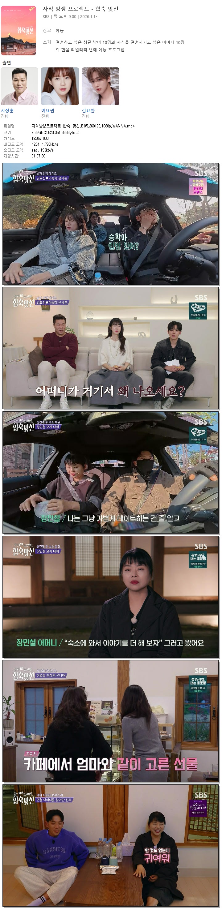 [SBS] 자식방생프로젝트 합숙 맞선.E05.260129.1080p.WANNA[서장훈, 이요원]