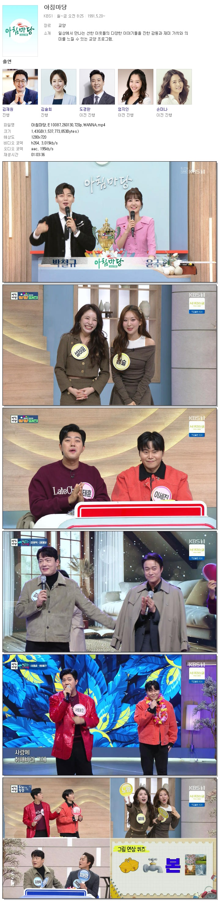 [KBS1] 아침마당.E10087.260130.720p.WANNA[엄지인, 박철규]