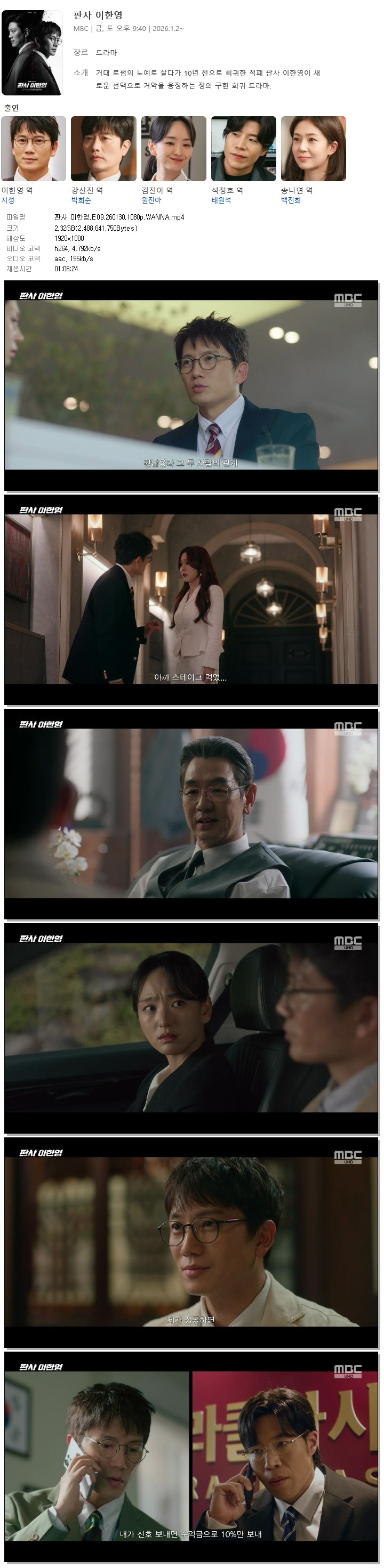 [MBC] 판사 이한영.E09.260130.1080p.WANNA[지성, 원진아]