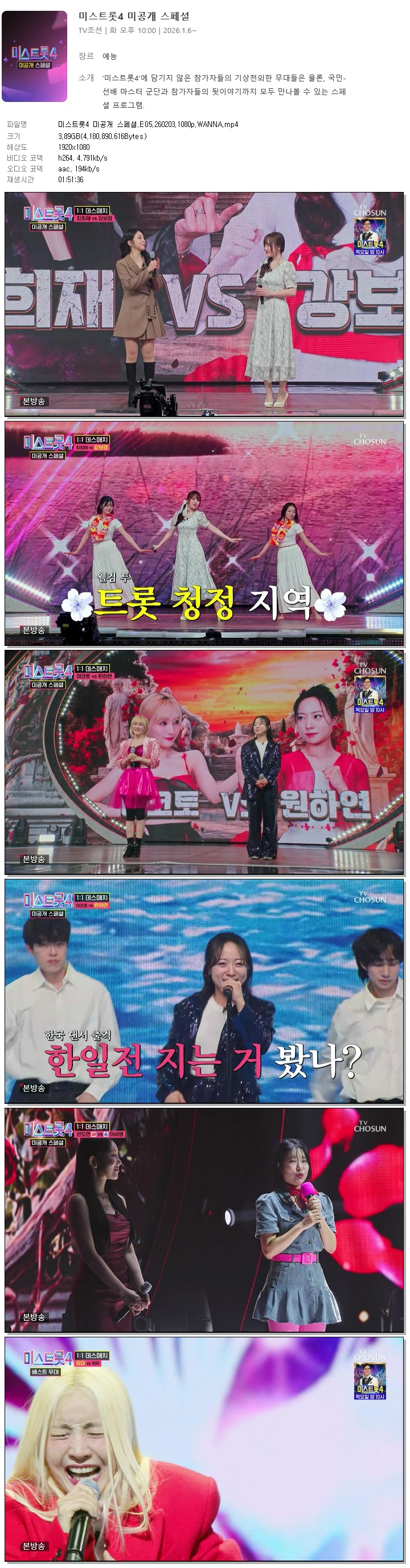 [TV조선] 미스트롯4 미공개 스페셜.E05.260203.1080p.WANNA[장윤정, 장민호]