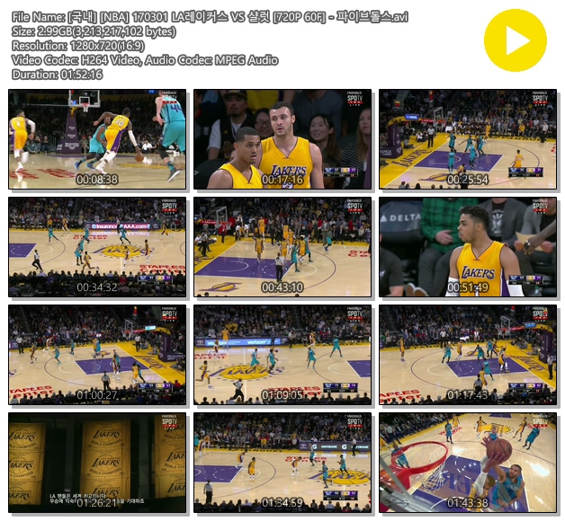 [국내] [NBA] 170301 LA레이커스 VS 샬럿 [720P 60F]/