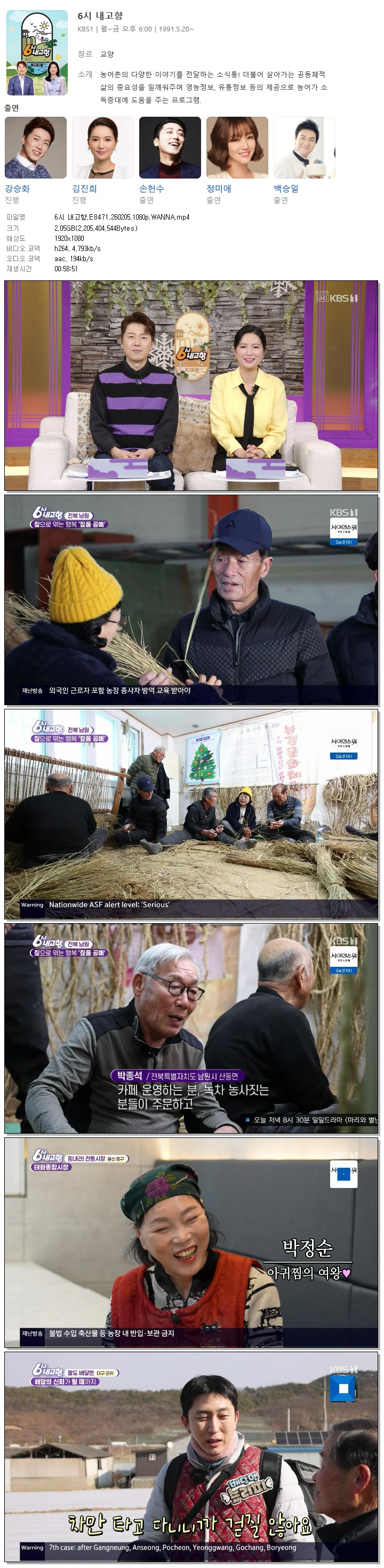 [KBS1] 6시 내고향.E8471.260205.1080p.WANNA[강승화, 김진희]