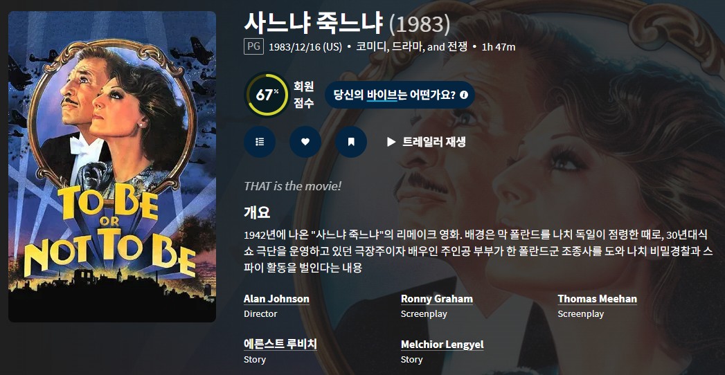 [영화-코미디] 사느냐 죽느냐.To.Be.Or.Not.To.Be.1983.1080p.BluRay.한글자막/