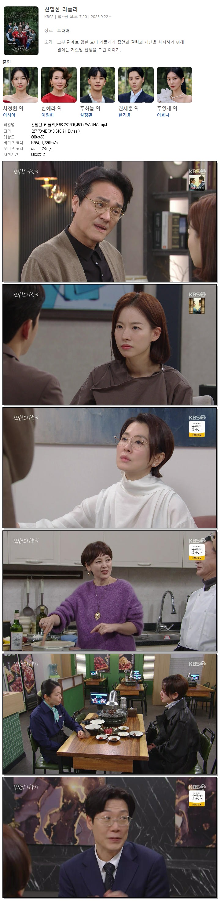 [KBS2] 친밀한 리플리.E93.260206.450p.WANNA[이시아, 이일화]