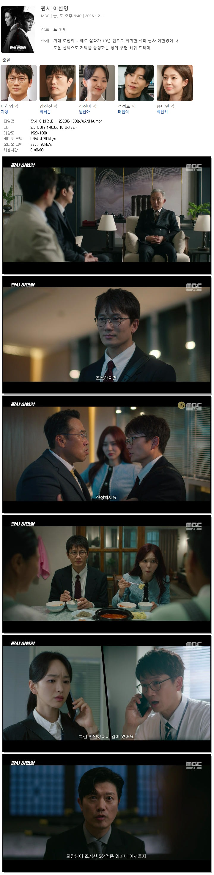 [MBC] 판사 이한영.E11.260206.1080p.WANNA[지성, 원진아]