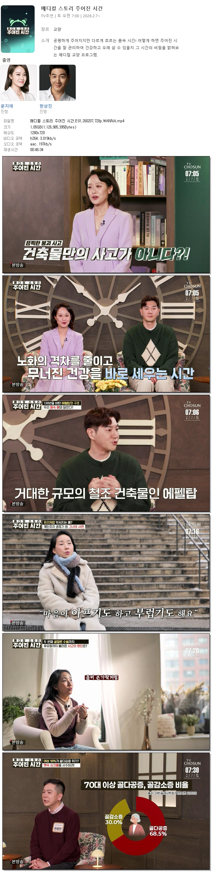 [TV조선] 메디컬 스토리 주어진 시간.E01.260207.720p.WANNA[문지애, 한상진]