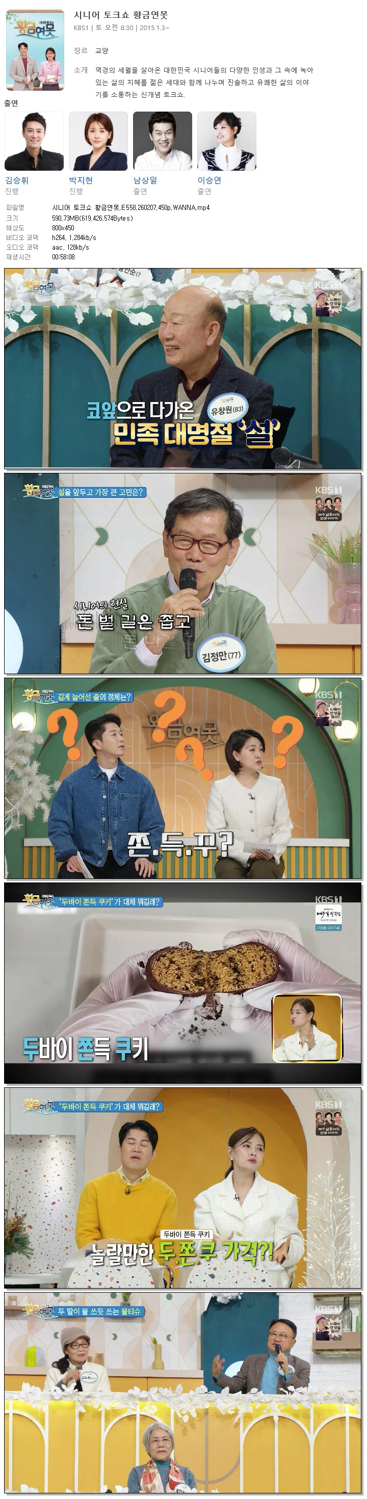 [KBS1] 시니어 토크쇼 황금연못.E558.260207.450p.WANNA[김승휘, 박지현].mp4 590.7 M MP4 00:58:08 800x450