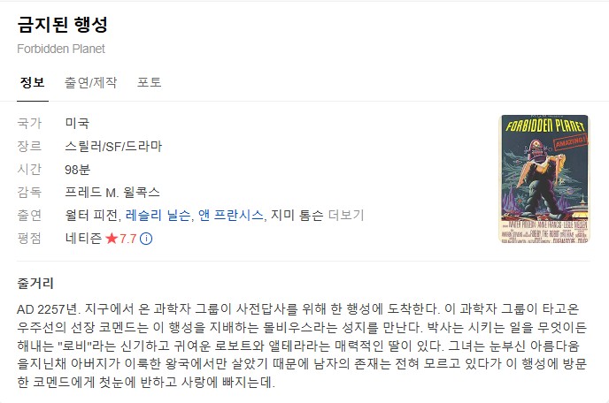 [영화-SF] 금지된 행성.Forbidden Planet.1956.720p.한글자막