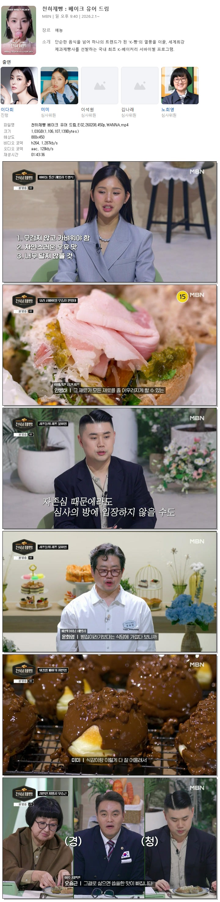 [MBN] 천하제빵 베이크 유어 드림.E02.260208.450p.WANNA[이다희, 미미]