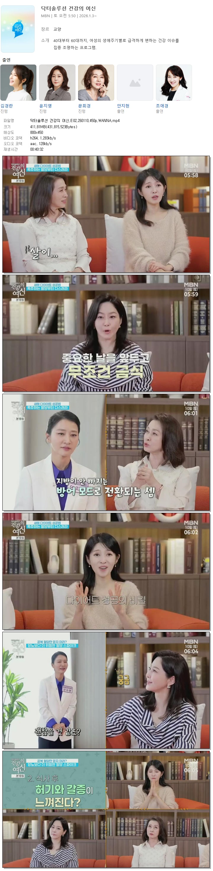 [MBN] 닥터솔루션 건강의 여신.E02.260110.450p.WANNA[김경란, 윤지영]