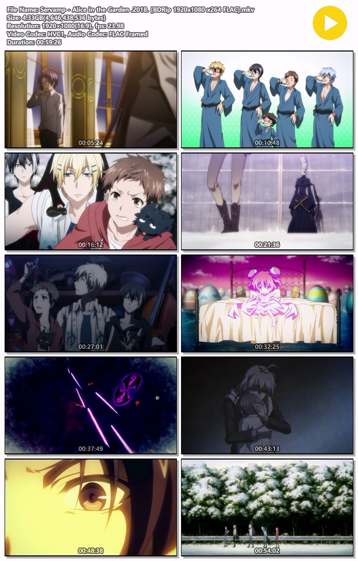 | Servamp - Alice in the Garden .2018. [BDRip 1920x1080 x264 FLAC].mkv | 4.3 G | MKV | 00:59:26 | 1920x1080 |