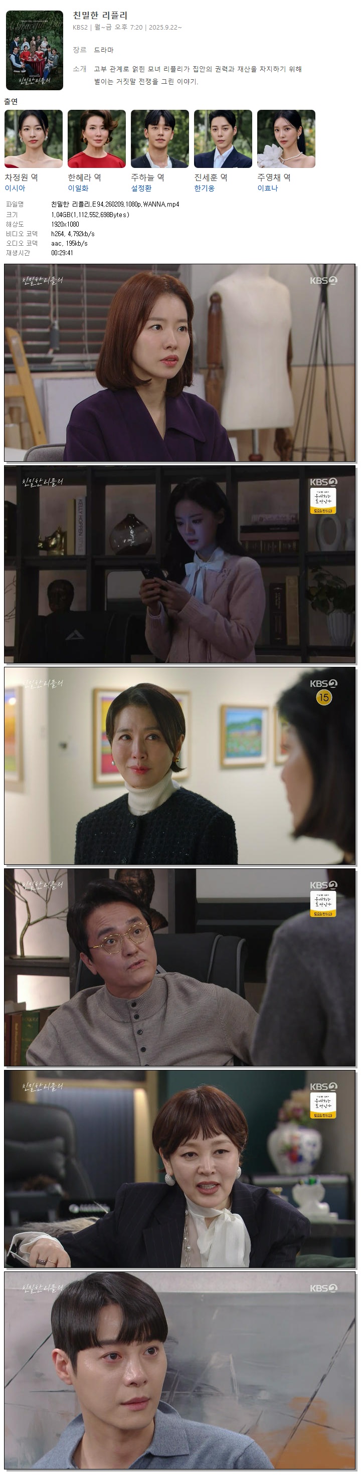 [KBS2] 친밀한 리플리.E94.260209.1080p.WANNA[이시아, 이일화]