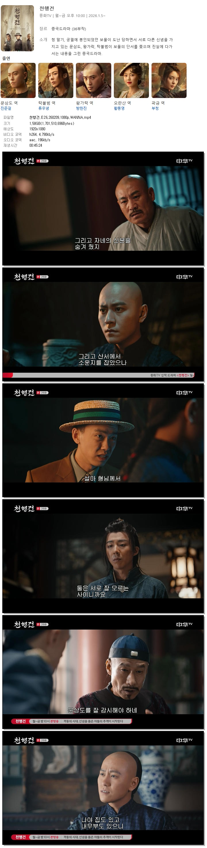 [중화TV] 천행건.E26.260209.1080p.WANNA[진준걸, 류우녕]