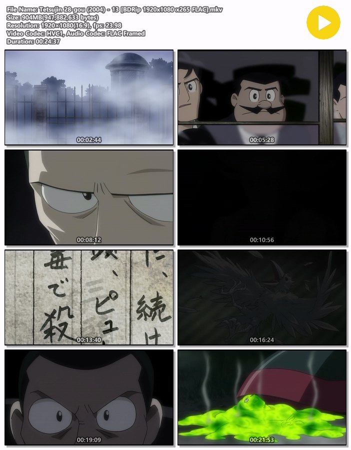 | Tetsujin 28-gou (2004) - 19 [BDRip 1920x1080 x265 FLAC].mkv | 962.9 M | MKV | 00:24:37 | 1920x1080 |
