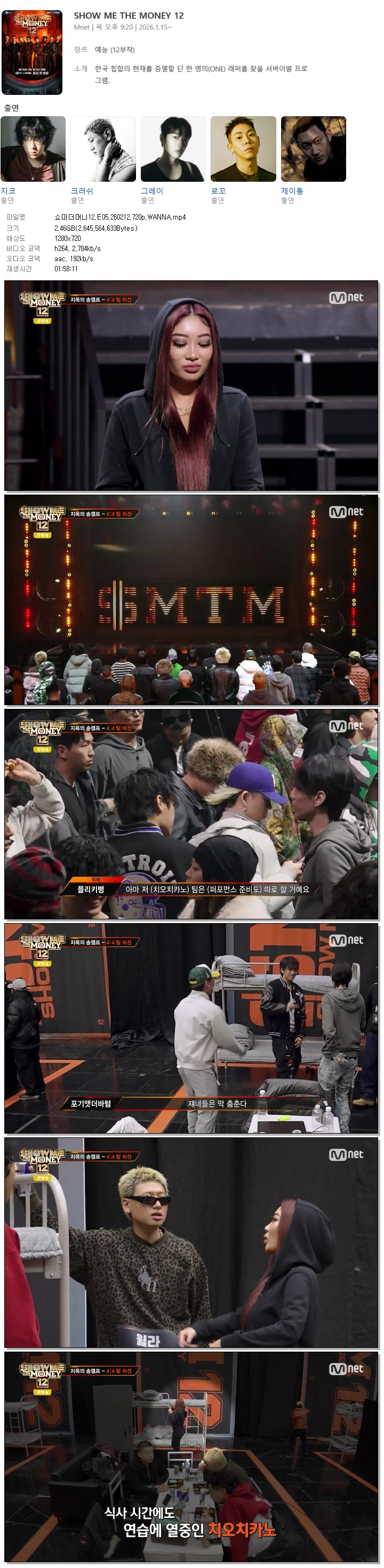 [M.net] 쇼미더머니12.E05.260212.720p.WANNA[크러쉬, 박재범]