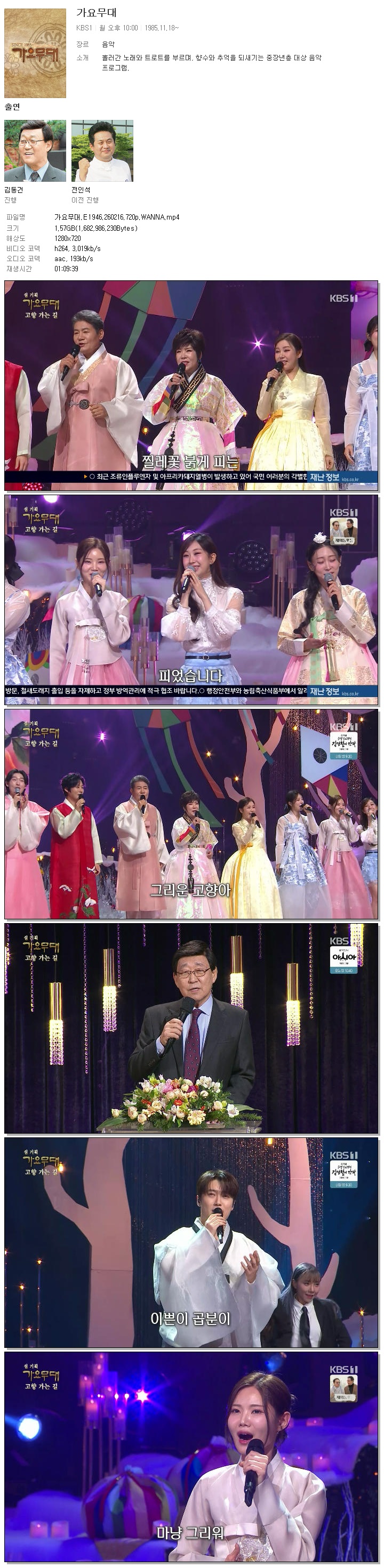 [KBS1] 가요무대.E1946.260216.720p.WANNA[김용빈, 송가인]