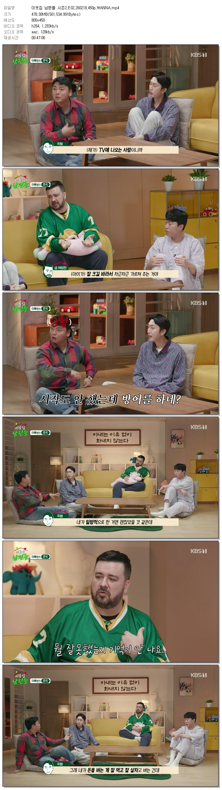[KBS1] 이웃집 남편들 시즌2.E02.260218.450p.WANNA[샘해밍턴, 곽범]
