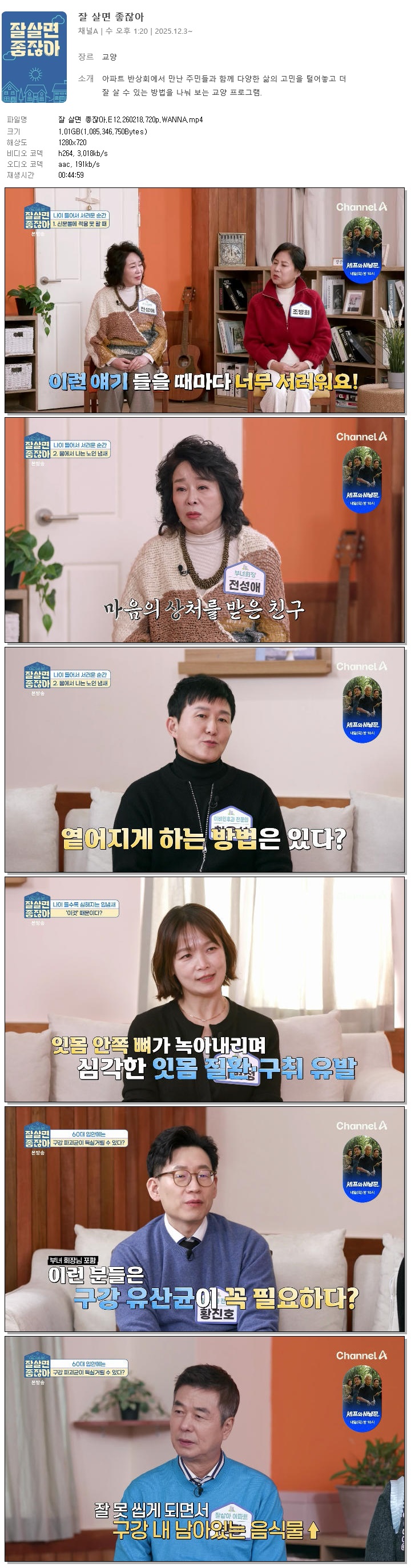 [채널A] 잘 살면 좋잖아.E12.260218.720p.WANNA[선우재덕, 정미애]