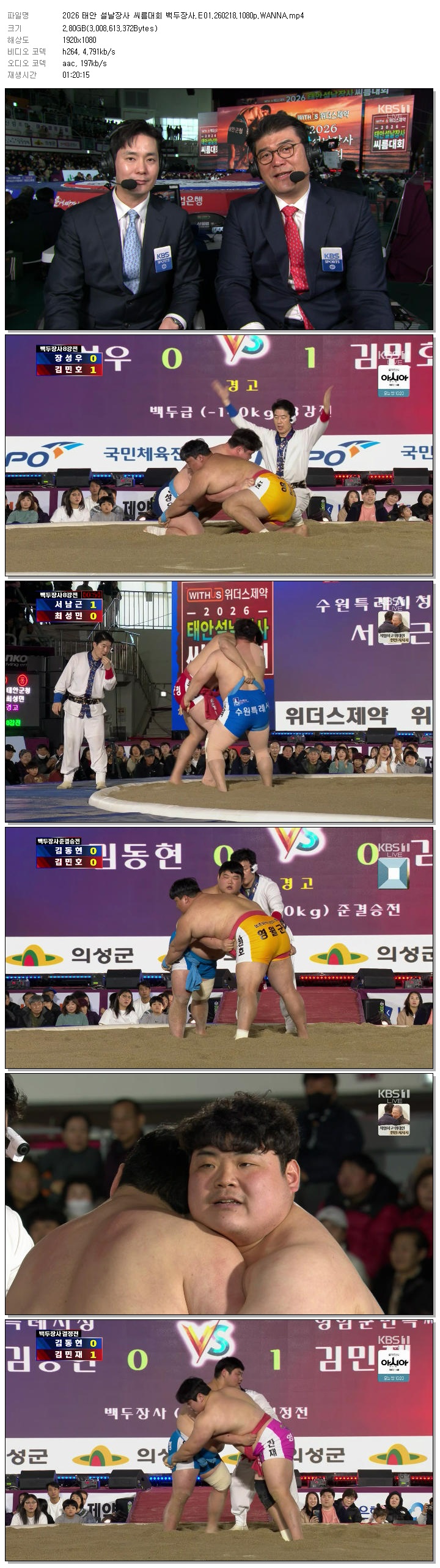 [KBS1] 2026 태안 설날장사 씨름대회 백두장사.E01.260218.1080p.WANNA