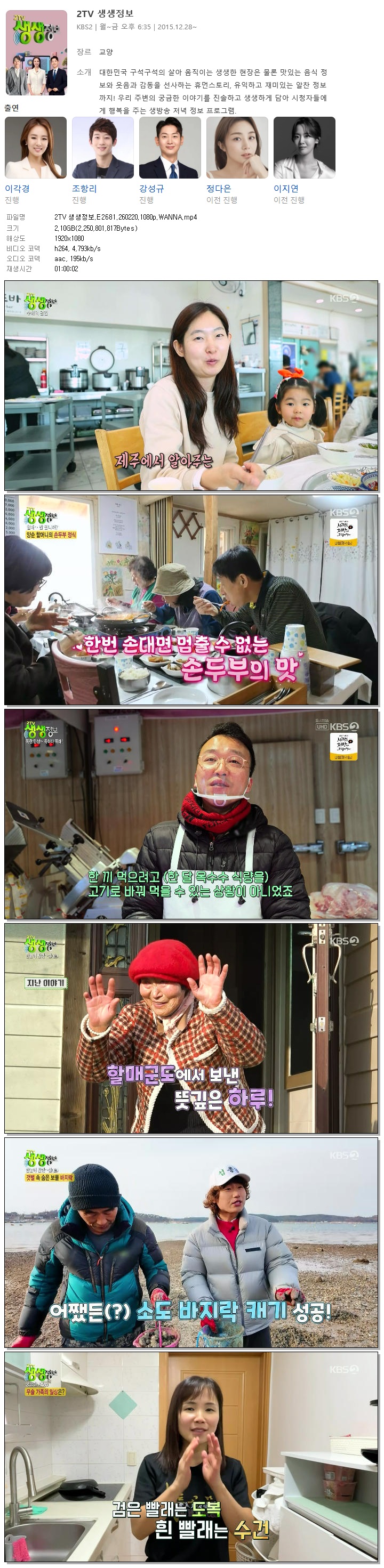 [KBS2] 2TV 생생정보.E2681.260220.1080p.WANNA[이각경, 조항리].mp4 2.1 G MP4 01:00:02 1920x1080