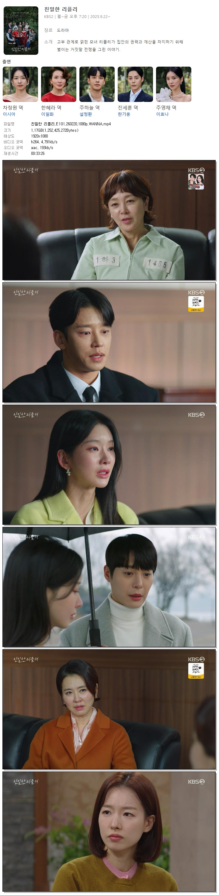 [KBS2] 친밀한 리플리.E101.260220.1080p.WANNA[이시아, 이일화]