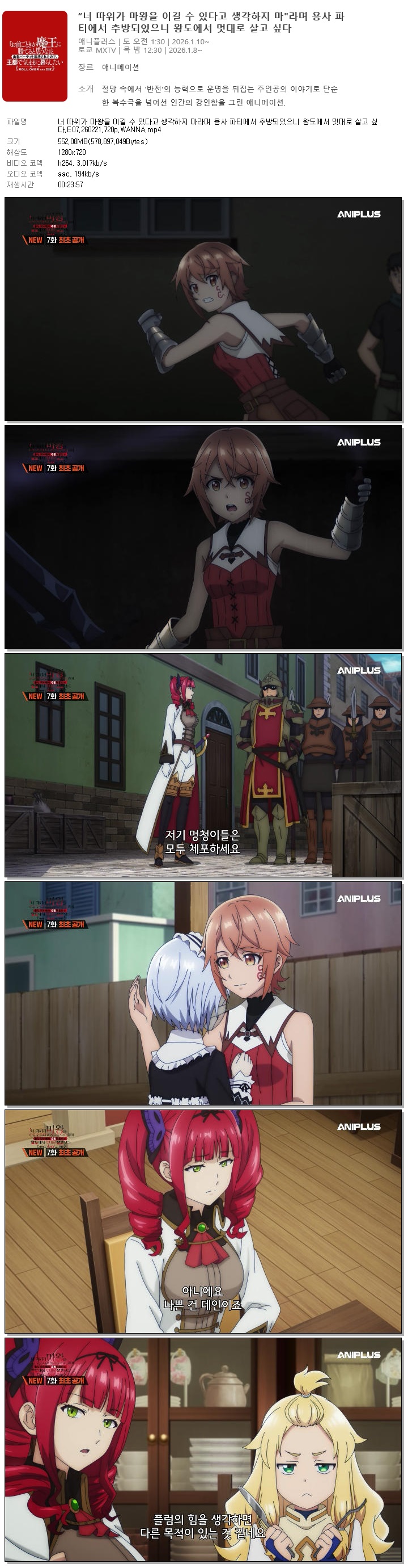 | 너 따위가 마왕을 이길 수 있다고 생각하지 마라며 용사 파티에서 추방되었으니 왕도에서 멋대로 살고 싶다.E07.260221.720p.WANNA.mp4 | 552.1 M | MP4 | 00:23:57 | 1280x720 |