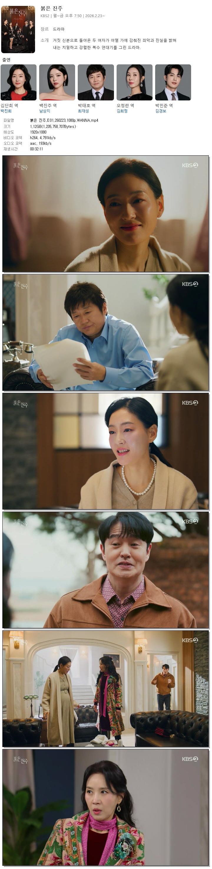 [KBS2] 붉은 진주.E01.260223.1080p.WANNA[박진희, 남상지]